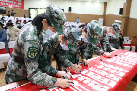 会后,校武装部还通过横幅签名、发放征兵宣传资料和现场咨询等方式,向同学们细致地讲解了今年的征兵条件、报名方法及相关优待政策。(武装部供稿)