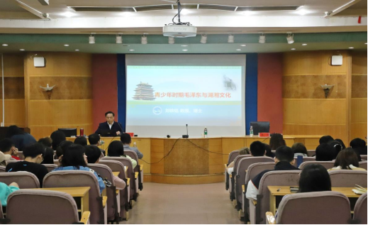 4月27日晚,学校党委副书记、校长刘铁铭教授在养根楼报告厅为180余名青年马克思主义骨干班和团学干部培训班学员们做了题为“青少年时期毛泽东与湖湘文化”的专题讲座。讲座由马克思主义学院党总支书记李伶主持。