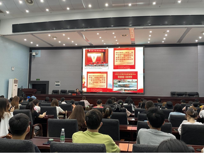 6月8日下午,校党委委员、纪委书记凌艳平给数学与金融学院全体师生党员上了一堂以“从党史学习中提升爱国、奉献、奋斗精神”为主题的党课。