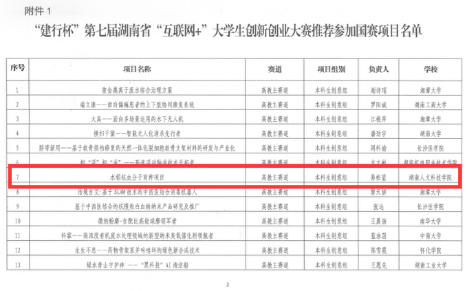 8月27日至8月30日,由湖南省教育厅等10个部门共同主办、省大中专学校学生信息咨询与就业指导中心、中国建设银行湖南省分行、湖南开放大学联合承办的“建行杯”第七届湖南省“互联网+”大学生创新创业大赛在长沙举办。beat365学子在大赛中获得省级一等奖一项,“水稻抗虫分子育种”项目成功挺进国赛。
