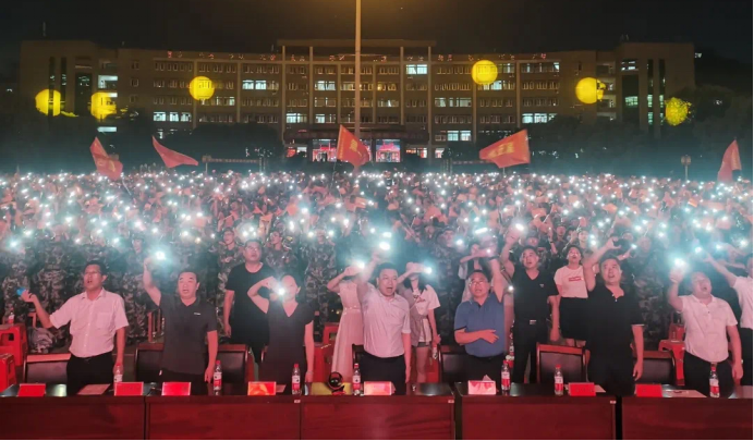 在场师生点亮手中闪光灯一起高声合唱《歌唱祖国》