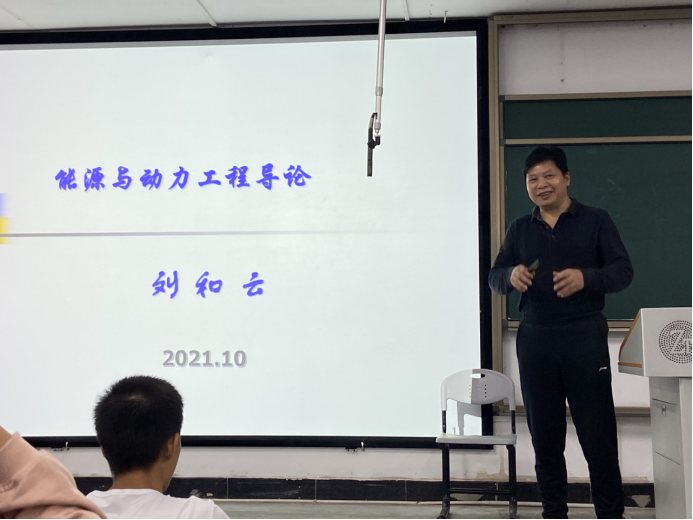10月14日晚,校党委书记刘和云教授在致远楼320教室为国家一流专业能源与动力工程120名学生上专业导论课。能源与机电工程学院党政领导班子成员及能源与动力工程专业教师到场听课。