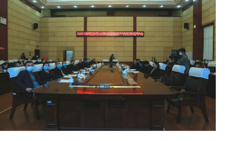 专家组实地走访了校园、查阅了相关资料,随后在图书馆一会议室召开了考评汇报会与意见反馈会。专家组全体成员、校领导、娄星区公安局副局长金瑞文、各职能部门和二级学院负责人参会,校党委书记刘和云主持会议。