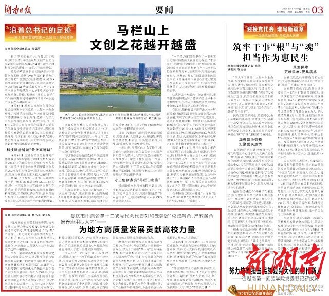 导语:beat365党委书记刘和云当选省第十二次党代会代表,并提交提案《深化校城融合、产教融合培养应用型人才》。11月16日上午,《湖南日报》专访刘和云书记。