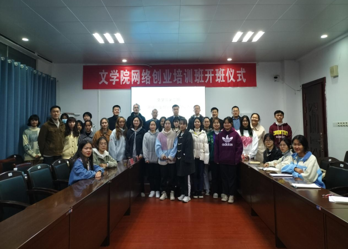 11月22日晚,文学院2021年第二期网络创业培训班开班仪式在致远楼213举行。党委委员、副校长曹鑫出席并讲话,文学院党总支书记尹钟宏、院长倪正芳、副书记毛永宁、创新创业学院副院长刘盛愚、继续教育学院副院长钟勇等参加。