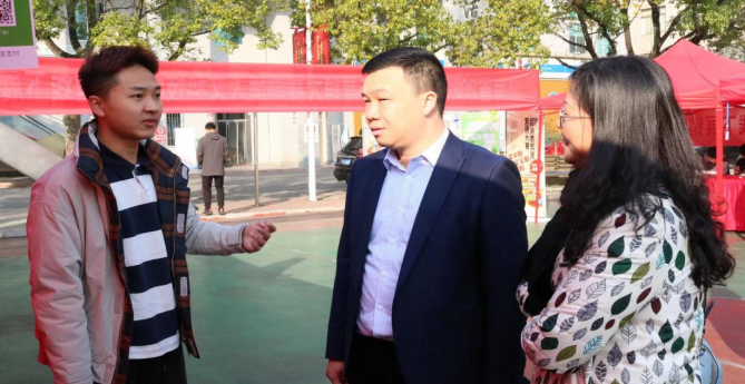 展销会得到学校领导的高度重视和职能部门的大力支持,副校长曹鑫亲临现场了解销售情况并与同学们交流,他希望大家通过大赛锻炼能力,充分利用专业优势营销产品,助力乡村振兴。工会常务副主席刘志成、团委书记陈刚、副书记刘佳等也到场指导。