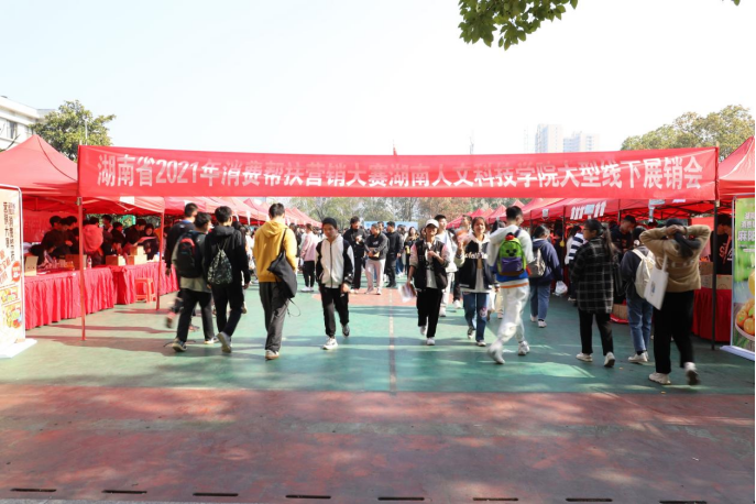 12月6日至12月7日,为进一步落实湖南省消费帮扶大赛文件要求,推进beat365消费帮扶工作,提高农副产品产品销量,助力乡村振兴,beat365在宇光球场举办线下展销会。展销会吸引了学校多个团队参与销售,现场人头攒动,广大师生积极参与,纷纷购买农副产品,为扶农助农奉献自己的一份力量。