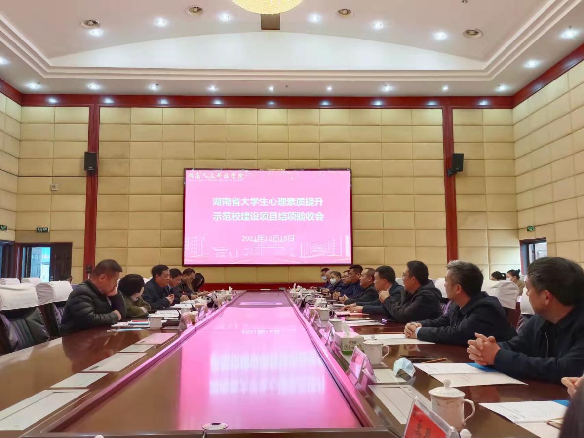 12月10日上午,湖南省大学生心理素质提升示范校建设项目结项验收汇报会在图书馆第一会议室召开,党委委员、副校长刘铁峰出席,党委委员、副校长曹鑫主持并代表学校对专家组表示热烈欢迎。
