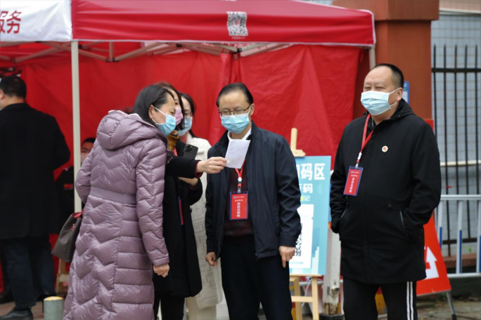 李军林书记一行在东门和西门检查了人脸识别系统及测温器,检查了外来人员健康码核验、访问记录表、临时隔离观察室等,详细了解校园环境消杀、车辆查验、消毒、智能测温仪使用、出入口体温登记等工作细节。检查组现场对防控工作进行了反馈。