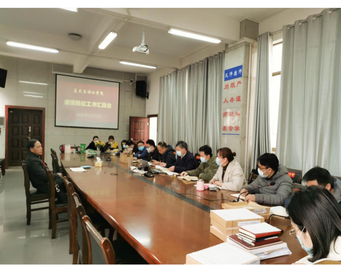 3月22日上午,党委副书记、校长刘铁铭深入美术与设计学院调研指导疫情防控工作,对学院疫情防控工作进行再部署、再安排、再强调,学院领导班子、教研室主任、全体辅导员出席调研会议。