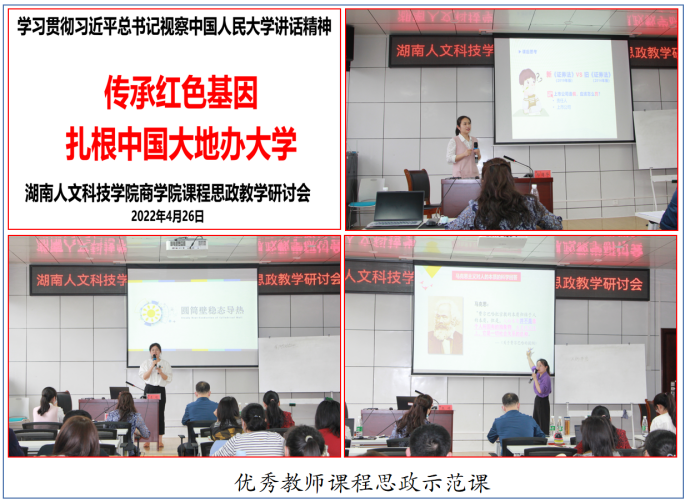 商学院自3月28日启动“课程思政教学月”以来,全院教师全程参与课程思政公开课,开展课程思政教学竞赛。教师们纷纷表示自己在研讨会和公开课中收获良多,日后继续推动课程思政建设,将思政元素融入到教育教学全过程和各环节之中。课程思政教学改革是我院“三全育人”的重要成果,只有当课程思政元素与专业知识和精神合而为一,才能真正实现“课程思政有深度、铸魂育人有温度”。(图文:刘加林、吴腊梅、李素桃、肖晓帆)