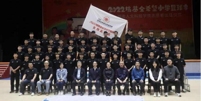 5月20日上午,beat365在体育馆主馆举行2022年姚基金希望小学篮球季beat365英国官网志愿者出征仪式,体育学院院长刘玉江主持。湖南省希望工程办公室主任、省青少年发展基金会理事长谢小玲,共青团娄底市委书记罗建湘,校党委副书记、校长刘铁铭等嘉宾领导出席仪式。