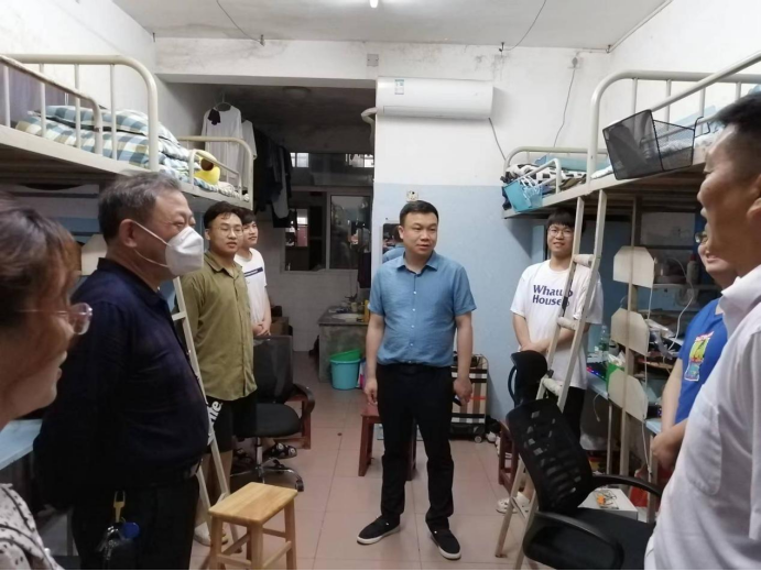 5月30日晚,党委委员、副校长曹鑫深入学生宿舍,走访慰问2022届毕业生。学生工作处处长李玲军等陪同。