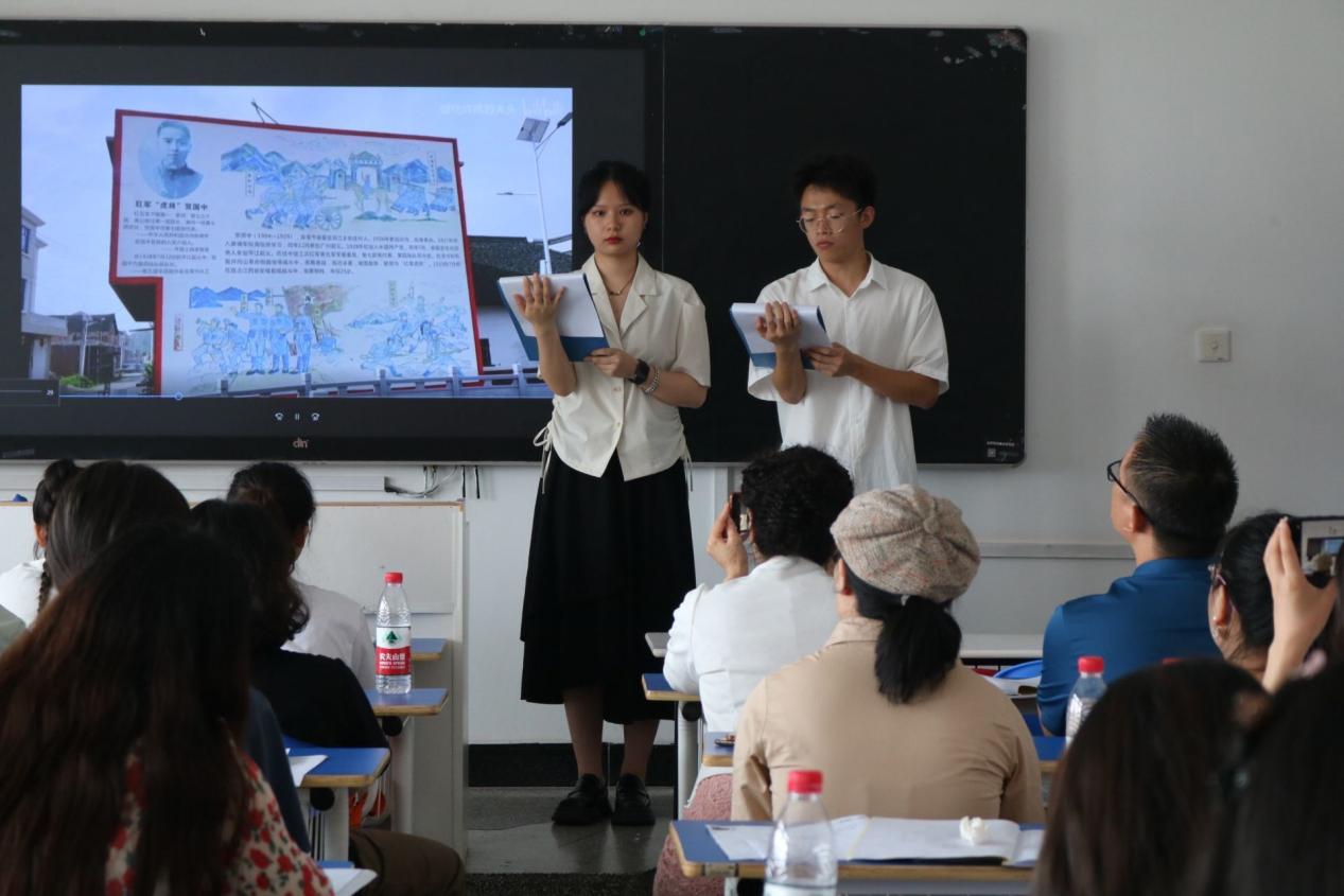 在集体备课展示环节中,娄底市第六小学向灿花、娄底市第一中学附属实验学校万芬、娄底市第四中学钟燕、娄底职业技术学院周婉儿,分别以“伟大事业都始于梦想”、“坚持中国共产党的领导”、“中国特色社会主义政党制度”、“中国精神的丰富内涵”为题,立足不同学段学生特点进行了课堂展示。随后,beat365马克思主义学院学生黄雅乐、程振浩以“‘虎将’贺国中”为主题进行了情景课堂展示,充分展现了新时代思政教师预备军的风采。
