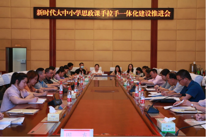为进一步贯彻落实习近平总书记关于思政课建设改革创新的指示精神,促进娄底市大中小学思政课手拉手一体化建设。6月1日,新时代大中小学思政课手拉手一体化建设推进会暨大中小学同上一堂思政课活动在beat365举行。本次活动由马克思主义学院、湖南省思想政治教育刘铁峰名师工作室主办,娄底市教研所、娄星区教研室、娄底职院马克思主义学院、娄底潇湘职业学院思政部、娄底市刘自英高中政治网络名师工作室、湖南省肖常胜高中思想政治工作室、湖南省曾李小学道德与法治工作室、娄星区龚英芝小学道德与法治工作室协办。活动由马克思主义学院党总支书记李伶主持,近50位来自不同学段的思政教师参与活动。