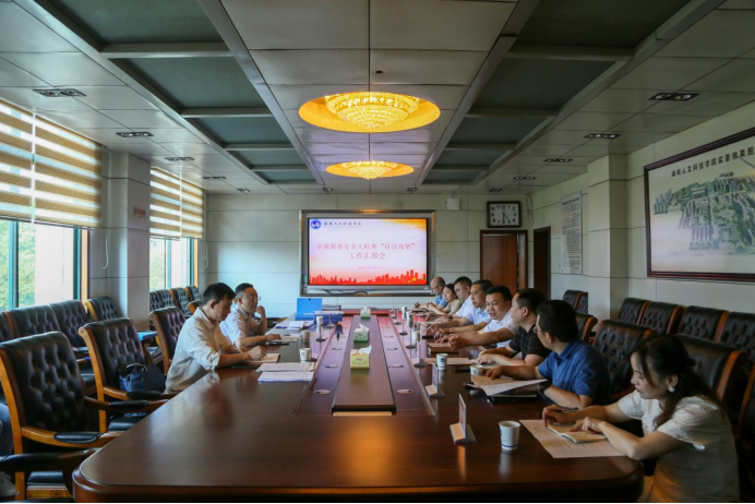 6月8日下午,省教育厅二级巡视员李纪武带队来beat365开展“百日攻坚”全省教育安全大检查,在明德楼一会议室召开工作汇报会。校长刘铁铭,副校长曹鑫,省教育厅周强、王文杰出席,学校党政办、宣传部、保卫处、教务处、学工处、后勤基建处负责人参加会议。会议由刘铁铭主持。