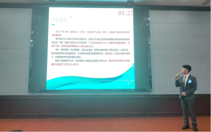 比赛现场,各参赛团队按顺序上台对自己的作品进行展示讲解,并接受评委老师的点评提问。评委老师从实际出发向选手提出关于项目落地性、产品竞争力等问题。