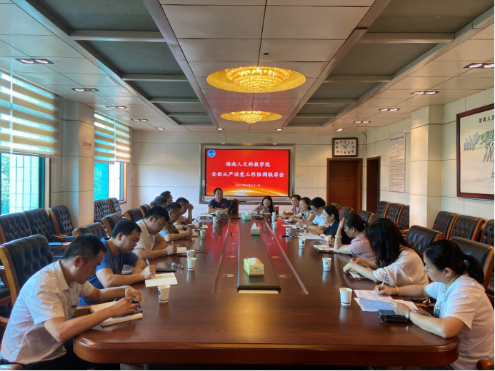 6月21日上午,我校在明德楼一会议室召开2022年上半年全面从严治党工作协调联席会,校党委委员、纪委书记、省监委驻校监察专员凌艳平主持会议,党政办、监察专员办公室、组织部、宣传统战部、工会、团委、教务处、人事处、科研处、学生工作处、计划财务处、后勤基建处、国资处、审计处、督查处等部门的主要负责人参加。
