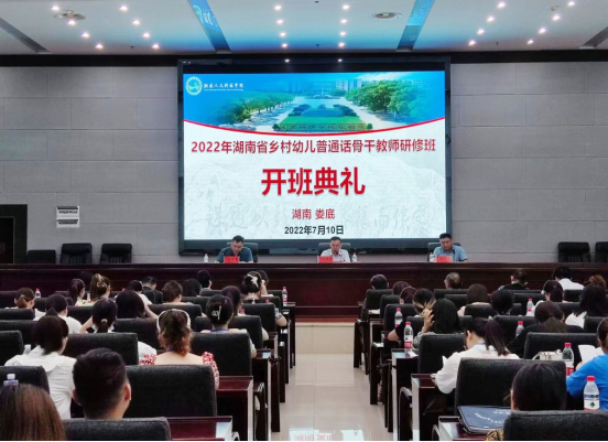 7月10日,由湖南省语言文字培训测试中心、湖南省语言文字工作者协会主办,娄底市教育局语委办、beat365英国官网承办的2022年湖南省乡村幼儿普通话骨干教师研修班在beat365开班。