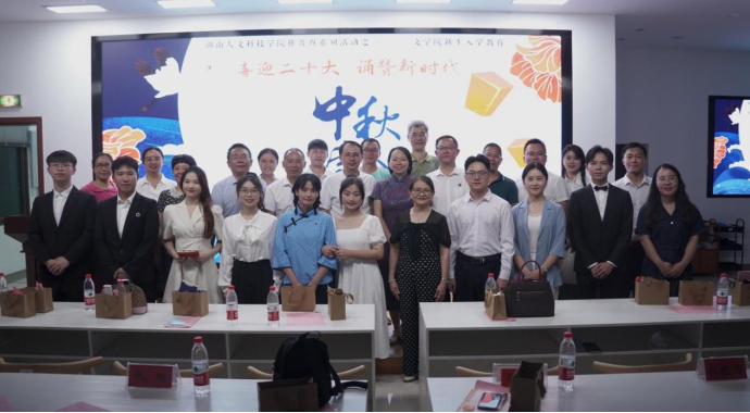 为大力推广和规范使用国家通用语言文字,提升师生语言能力,传承发展中华优秀传统文化,本届推普周主题活动以“喜迎二十大,诵赞新时代”中秋诗会的形式进行,得到湖南省语言文字推广基地和校语委办的精心指导。诗会在网络与新媒体专业学生及青藤传媒社成员的技术支持下采用现场直播的形式全程推流至云端,让全体师生共享一场诵读经典的视听盛宴。