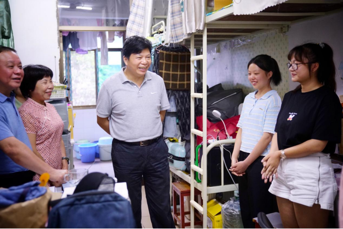 其他校领导及学校中层干部也深入2021级学生寝室中,师生共话即将召开的党的二十大,一同学习习近平新时代中国特色社会主义思想。领导们耐心细致地讲解学校疫情防控措施,认真收集同学们反映的问题。他们分享自己的读书经历和大学生活,鞭策同学们珍惜读书机会,认真学习,开拓视野。(文/新闻中心 王业良 图/胡坚毅)