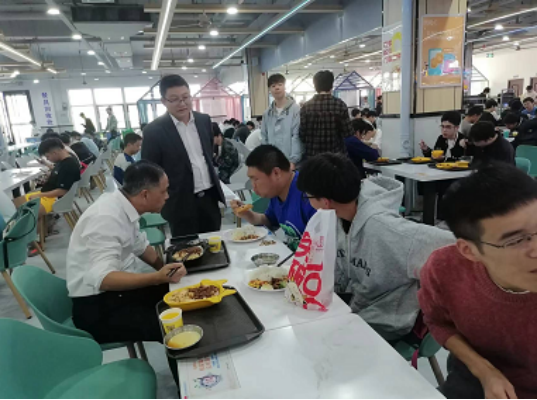 10月20日午餐时段,校长刘铁铭来到阳光公寓食堂视察,与学生共进午餐,面对面交流。
