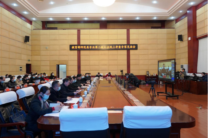 专家组就师范专业建设与人才培养的有关问题对相关职能部门负责人进行了循证。之后,专家组通过观看视频的方式对学校师范教育教学环境及实习基地进行了线上集体考查。