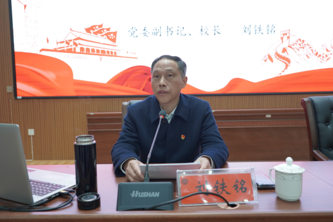 党委副书记、校长刘铁铭以“学习二十大 奋进新征程 解放思想 敢于担当 推进学校高质量发展”为主题,带领大家学习了党的二十大报告的基本框架、主要内容。他结合学校2023年主要工作,指导大家认清学校面临的困难和挑战,号召大家勇于担当,团结奋进破解学校发展难题。