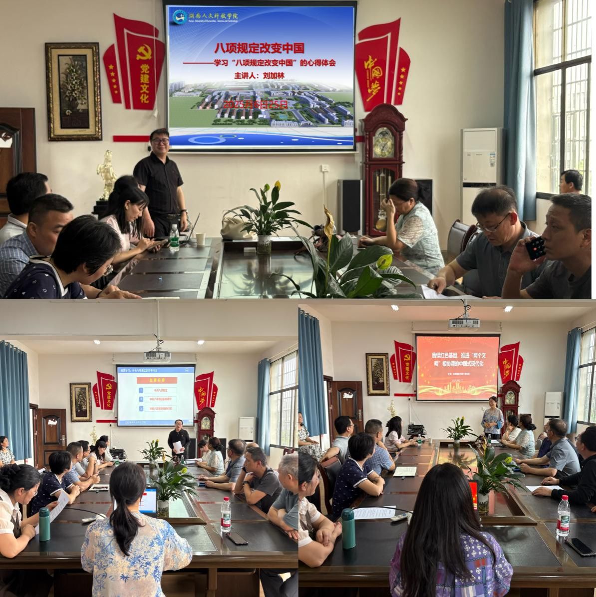 教工第三党支部书记刘加林围绕“中央八项规定改变中国”,通过数据与案例,系统回顾中央八项规定实施十年来取得的显著成效:“从‘舌尖上的浪费’到‘车轮上的腐败’,中央八项规定精神的深入贯彻落实以“抓铁有痕”之力重塑中国政治生态使得党风政风焕然一新,群众满意度持续提升”