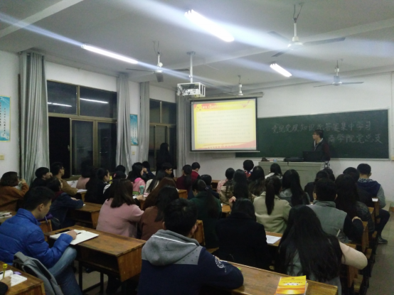 2016年10月30日—11月1日商学院党总支组织我院71名学生党员利用三个晚自习时间集中学习了《党章》、《摘编》、《准则》、《条例》。通过系统的理论学习,所有党员参加11月2日19:30分在同德楼601教室进行的笔试,各支部选取成绩前5名代表支部参与商学院党总支初赛。