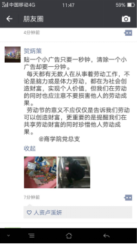 此次五一活动旨在让学生党员付出劳动、认可劳动光荣、从而形成良好的劳动习惯,并学会珍惜身边的劳动者。劳动存在于生活的点滴中,各阶层劳动者都是光荣的、美丽的!“五·一”劳动节,向所有的劳动人民致敬!