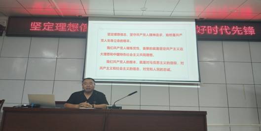 619日下午,商学院在高韵楼101举行学习贯彻习近平新时代中国特色社会主义思想主题教育学生党员读书班专题辅导报告会,报告会的主题是“坚定理想信念践行使命担当做好时代先锋,党总支书记刘辉主讲,全体学生党员参加,专职组织员曾文果主持。