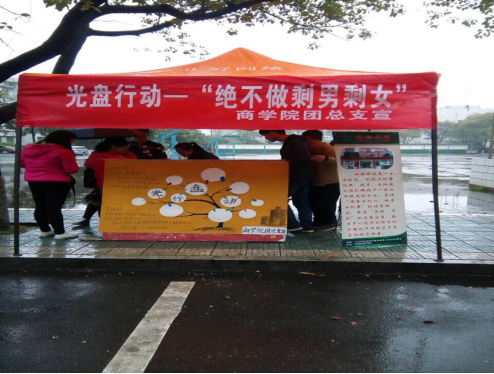 为提高同学们的节约意识,养成良好的节约习惯,由商学院团总支青工部策划并组织的青工活动“光盘行动---绝不做剩男剩女”于3月23号在一食堂门前拉开了帷幕。