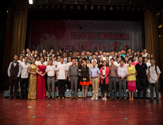 2016年 5月17日晚7点30分,商学院2016届“流经岁月,逐梦商海”毕业晚会在逸夫楼音乐厅隆重举行,出席此次晚会的有校学工处处长余为、校团委书记谢柳、学工处副处长李映泉、校团委副书记刘晔、产学研中心副主任周卫军、商学院所有领导、老师以及见证从经管系成长为商学院的2016届毕业生。