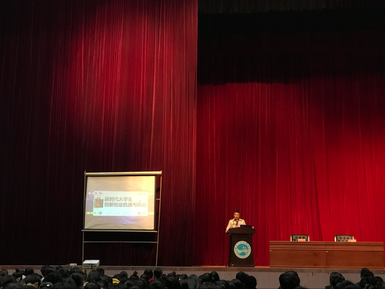 王少浪老师正在做新时代大学生创新创业机遇讲座