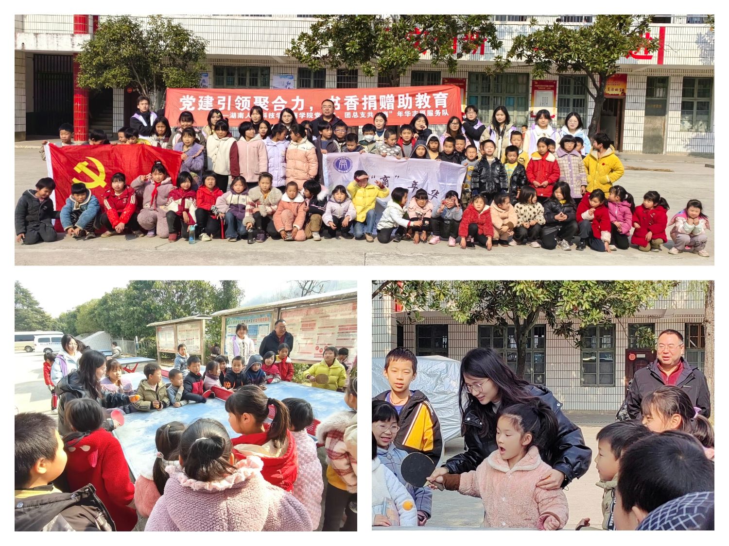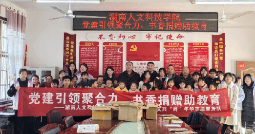 一滴水能反射出太阳的光辉,一份爱能体现出社会的温暖。为丰富乡镇学校的教育教学资源,关爱乡村儿童成长,助力乡村振兴建设,12月20日,beat365英国官网商学院党总支书记刘辉、团总支书记欧阳纯晶、辅导员刘佳瑶带领共“商”年华志愿服务队的党员志愿者们一同前往涟源市金石镇灌湄中学举行捐赠活动。
