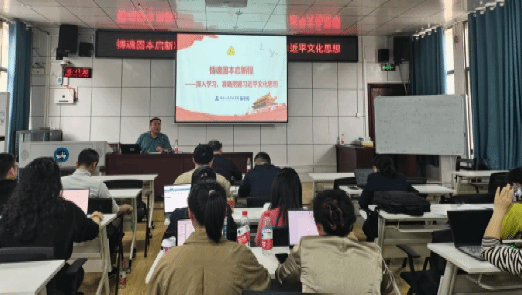 4月8日下午,党总支书记刘辉在高韵楼101给大家作了一场以《铸魂固本启新程:深入学习、准确把握习近平文化思想》为主题的辅导报告,商学院全体教职员工参加。