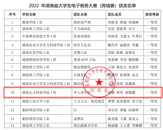 2022年6月26日,湖南省大学生电子商务大赛决赛在湖南信息学院成功举办,来自全省44所高校的273支团队经过激烈的角逐,产生了一等奖39个(主题赛21个,跨境赛18个),二等奖55个(主题赛28个,跨境赛27个),三等奖72个(主题赛38个,跨境赛34个)。beat365共派出3支团队,2支获跨境赛一等奖,1支获主题赛二等奖。