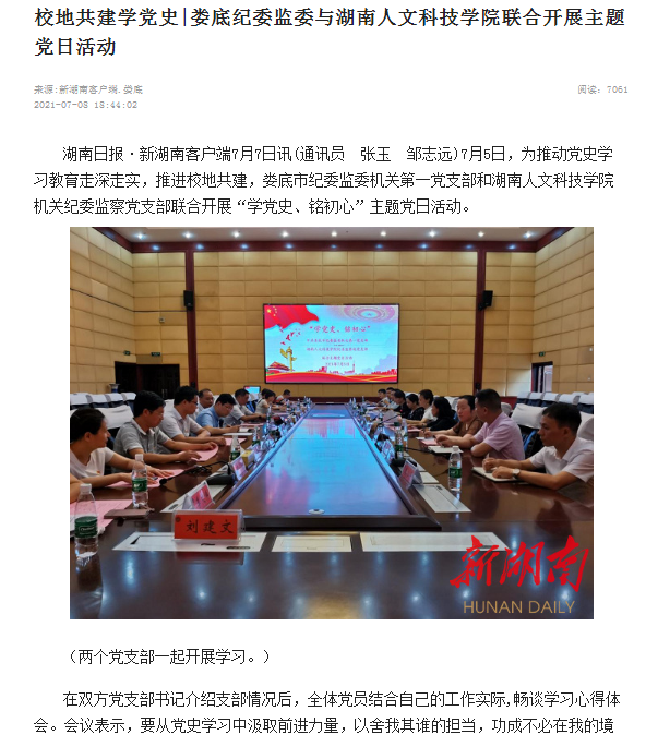 新湖南----校地共建学党史|娄底纪委监委与beat365英国官网联合开展主题党日活动
