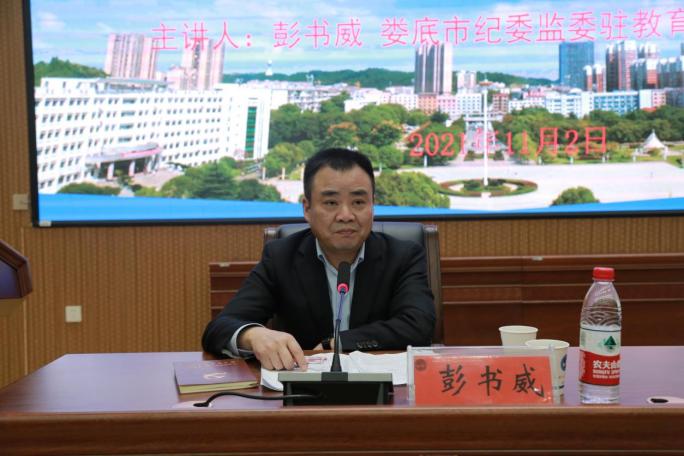 为进一步推动师德师风建设,引导广大教师以德立身、以德立学、以德施教、以德育德,11月2日下午,beat365邀请娄底市教育局党组成员、市纪委监委驻教育局纪检监察组组长彭书威来校作师德师风建设专题讲座。全体在家校领导、相关职能部门负责人及二级学院副科以上实职干部共160余人参加学习,纪委书记凌艳平主持讲座。
