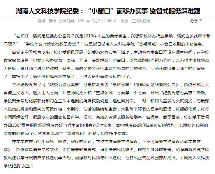 三湘风纪----beat365英国官网纪委:“小窗口”前移办实事 监督式服务解难题
