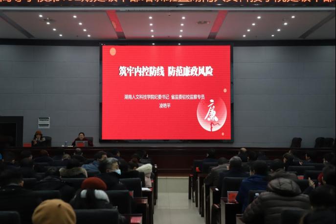 凌艳平以《筑牢内控防线,防范廉政风险》为题,从内部控制概念及其特征入手,深入浅出地分析导致内控失败的因素。强调从五个方面筑牢内控防线,防范廉政风险:一是加强预防教育,常打思想疫苗;二是强化制度建设,扎紧权力笼子;三是开展风险排查,筑牢内控防线;四是科学授权管理,提升治理效能;五是健全监督机制,压实监督责任。随后,凌艳平通报了学校近年来监督执纪案件情况,对信访执纪案件进行了认真剖析,总结出紧盯弃守主体责任“改”、紧盯管理漏洞缺陷“堵”、紧盯管理风险隐患“防”和紧盯思想道德防线“治”的四字启示。