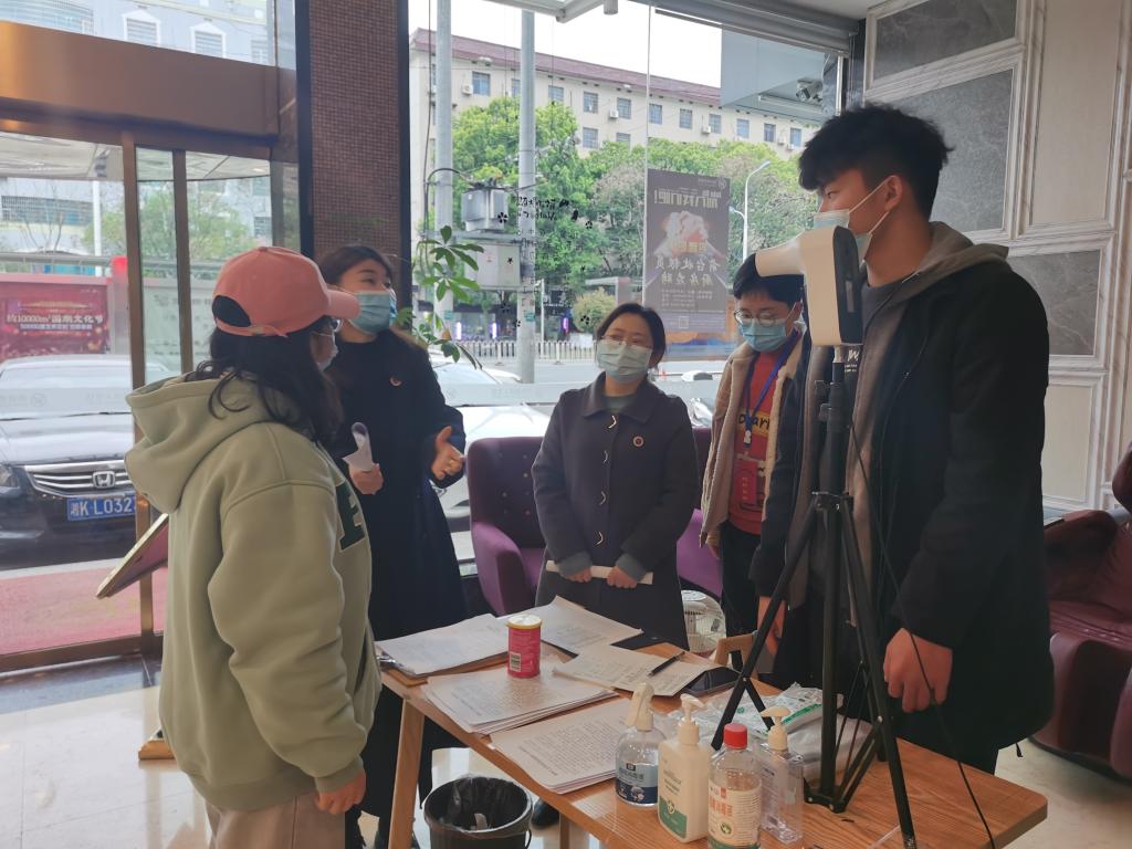 3月21日下午,校纪委书记、省监委驻校监察专员凌艳平带队深入校园、学校东大门、酒店隔离点等重点场所检查疫情防控工作。