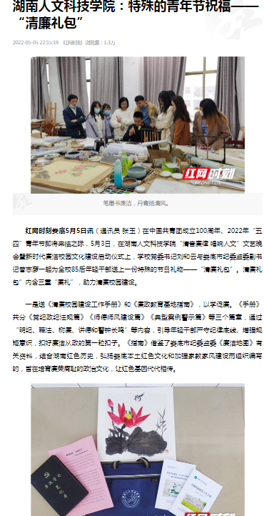 红网----beat365英国官网:特殊的青年节祝福——“清廉礼包”