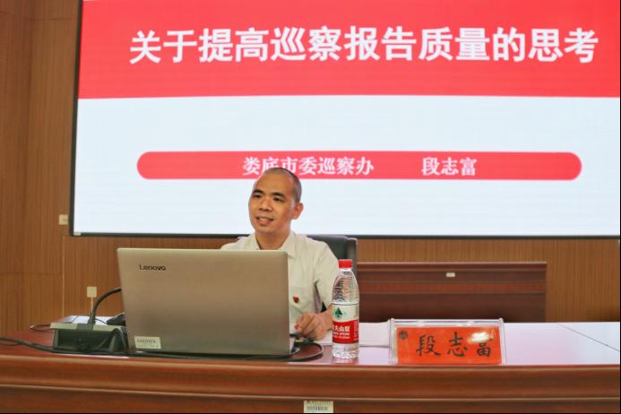 段志富以《关于提高巡察报告质量的思考》为题,从“高”“实”“深”“精”等4个方面对如何提高巡察报告质量作了详细的解读。他指出高质量的巡察报告需要全体巡察组员的共同努力,需要巡察办组的接续把关,希望大家发扬“工匠”精神,以高度的责任感使命感,以巡察报告的高质量推动巡察工作的高质量。