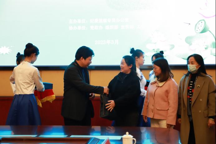 李军林宣读了加强清廉家风建设倡议书,倡导全校党员干部家庭以德立家、以廉治家、以俭兴家。4名“一把手”家属代表就如何弘扬廉洁家风、开展家庭助廉进行交流发言,分享廉洁治家心得。全体人员受赠包括《习近平关于注重家庭家教家风建设论述摘编》《清风传家 严以治家》等读本和印有“清廉”的水杯等组成的“清廉礼包”,饱含学校党委、纪委对干部家属的浓浓关爱和深深嘱托。