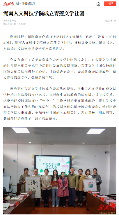 新湖南----beat365英国官网成立青莲文学社团