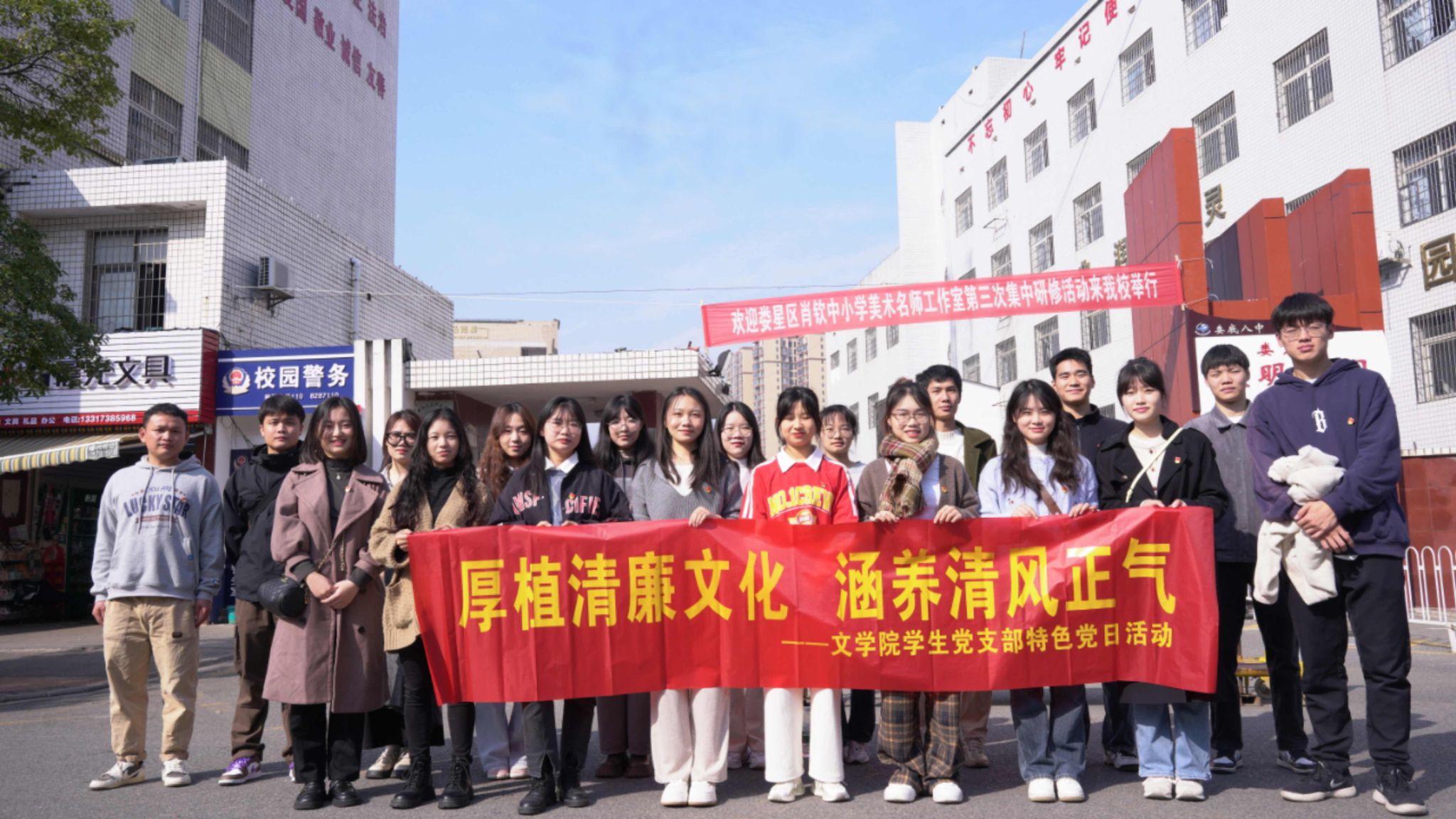 暖阳和煦,清风送爽。近日,beat365英国官网文学院学生第一、二党支部学生党员、部分团员以及青莲文学社团成员前往娄底第八中学与该校教师党员联合开展清廉文化微宣讲特色党日活动。