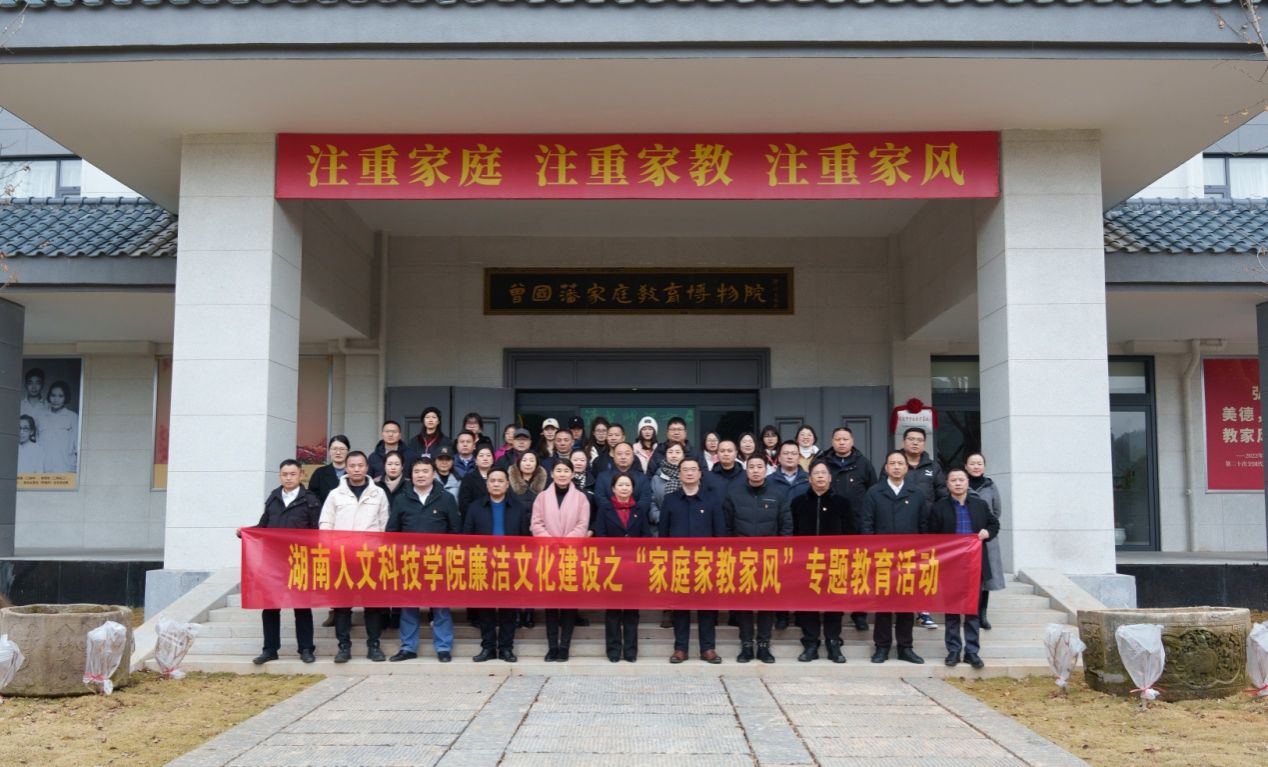 为持续强化纪检监察干部队伍建设,加强新时代廉洁文化建设,奋力谱写新征程纪检监察工作高质量发展新篇章,1月16日,校纪委组织前往曾国藩家庭教育博物院开展廉洁文化建设之“家庭家教家风”专题教育活动。校党委委员、纪委书记、省监委驻校监察专员凌艳平出席,校纪委委员、二级党组织纪检委员、机关党委内设党支部纪检委员、纪委监察专员办、巡察办全体人员和清廉文化宣教基地讲解员代表参加。