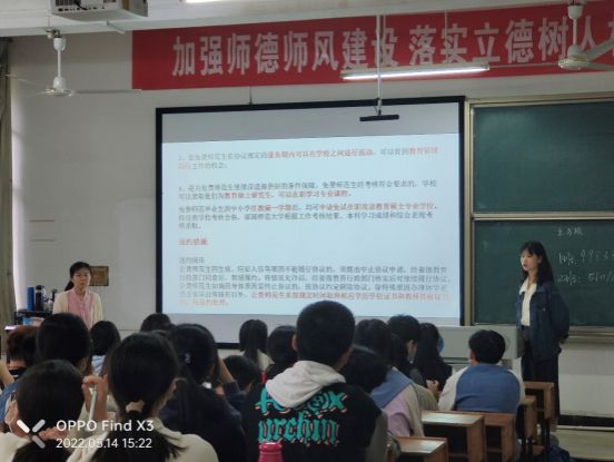 而对于物理学专业2021级的学生,曹老师的讲座则聚焦于“公费师范生职业发展指导”。他深入剖析了公费师范生的职业发展路径,鼓励学生们积极规划未来,为成为一名优秀的教育工作者打下坚实的基础。